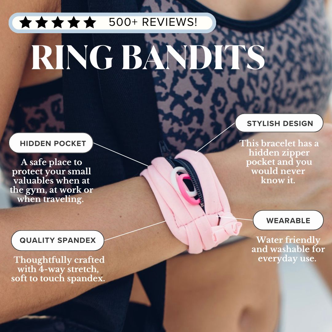 I was desperate to find a way to work and never miss a beat with my kids so I began praying really hard for a Shark Tank like idea. Then I heard the problem, "I never know what to do with my rings when I am at the gym" and I experienced this same issue! So I got to work on my design, borrowed my grandma's sewing machine and the very first time I touched a sewing machine, the Ring Bandit Bracelet came out.
