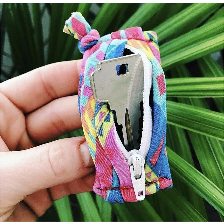 A Stylish, Functional bracelet with a secure hidden pocket. Wear it on your wrist, wrap it around your phone or water bottle. Protect your small valuables from being lost, stolen or damaged while you're at work, the gym or when traveling. A way to keep them safe, clean and on you at all times.