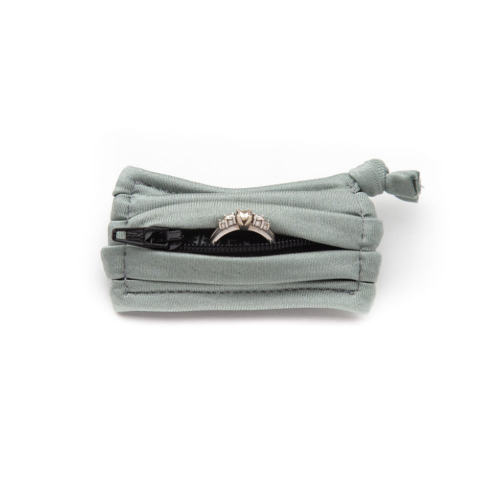 A stylish, functional bracelet with a hidden zipper pocket. Keep your Rings Safe and Clean.