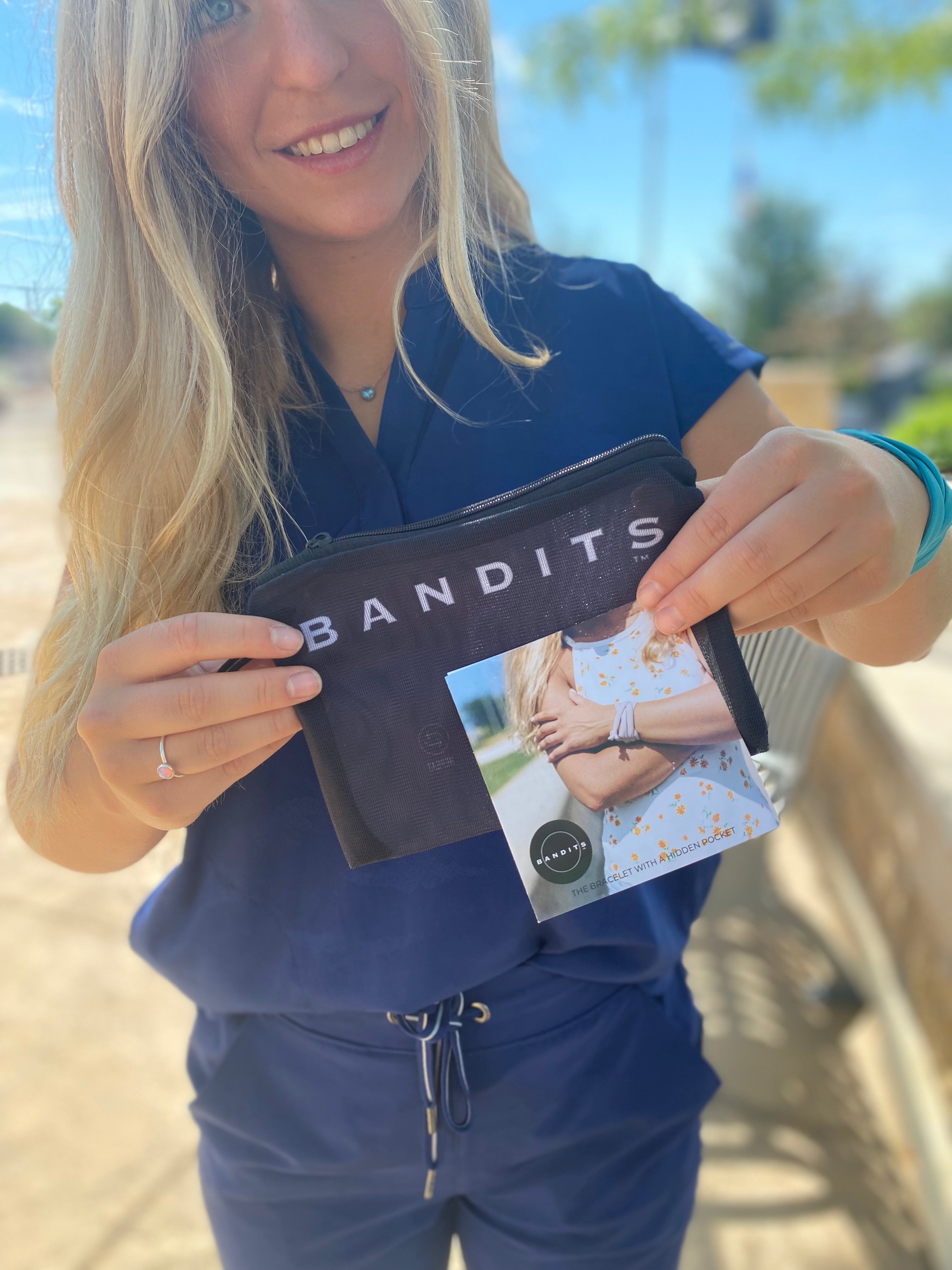 Since our accessories are made to wear everyday, we felt it was important to give you the proper accessory to wash them. This Bandits Wash Bag will prevent it from getting snagged up on anything harsh in your laundry, like zippers or velcro. Our Bandits Wash Bag is also used to store all your Bandits or travel with.