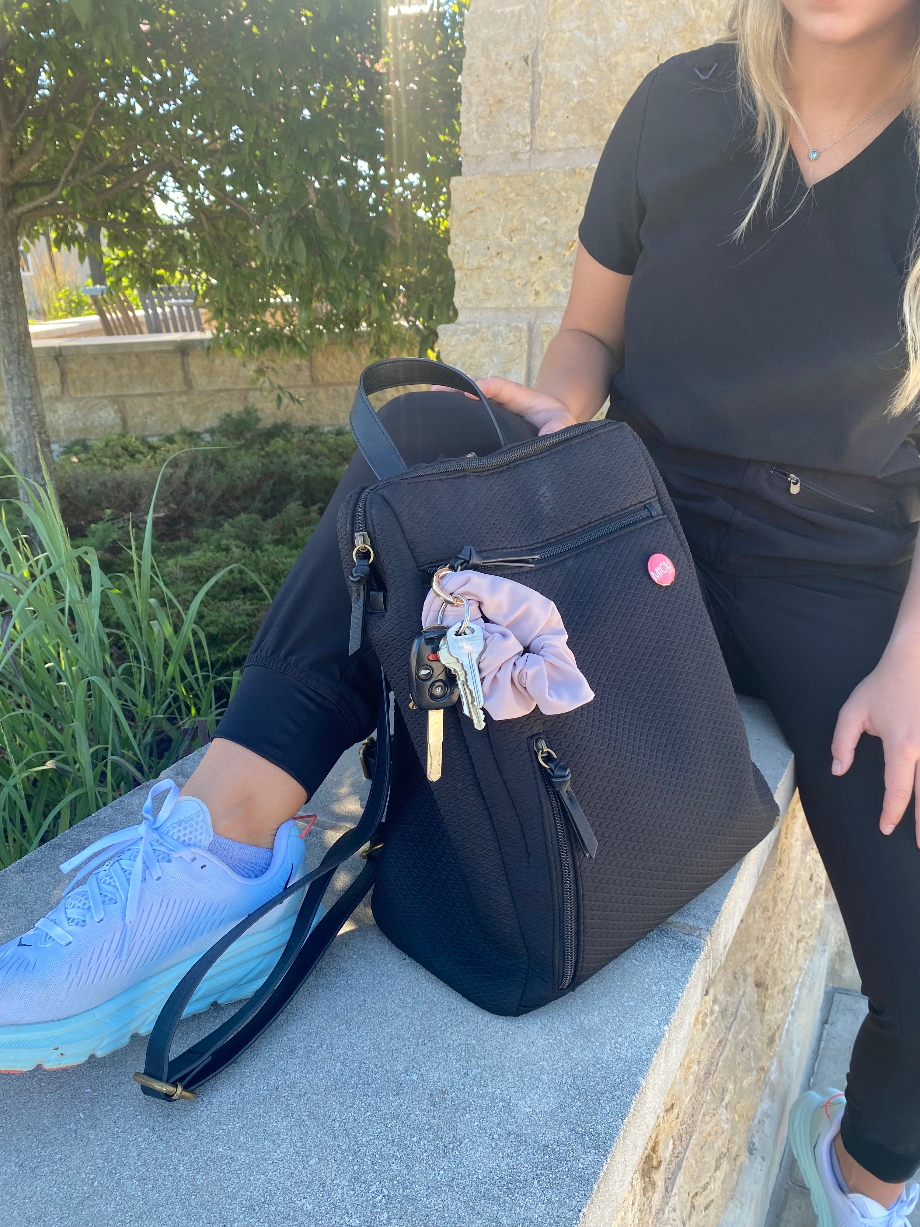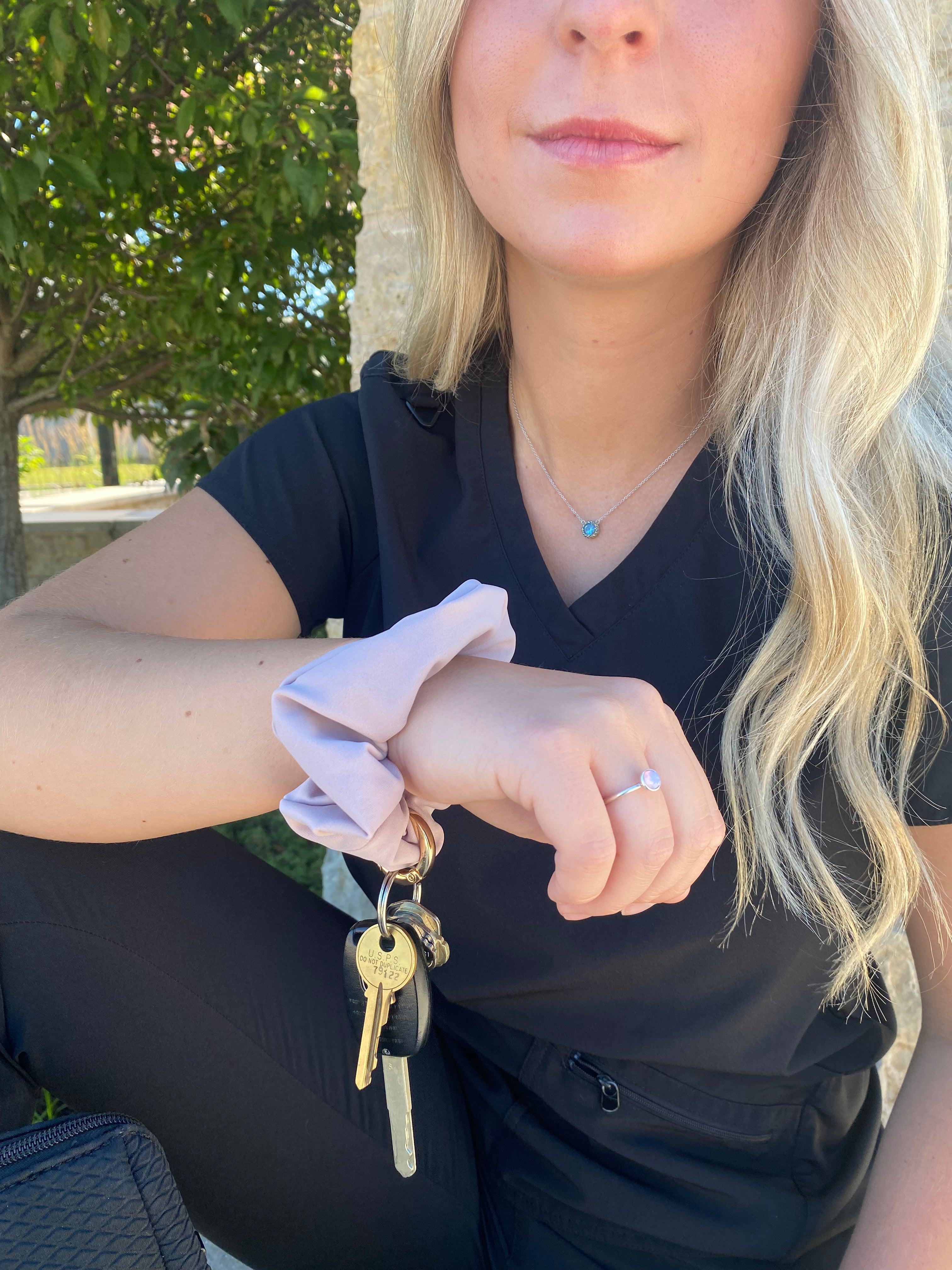 A multifunctional Scrunchie with a hidden velcro pocket that comes with a complimentary removable Key Ring. The pocket protects your little things (like a wedding ring, house key or cash) from being lost, stolen or damaged. It is the handiest hands-free keychain and a fantastic scrunchie for your hair. It is kink-free and easy on your hair for damage prevention.