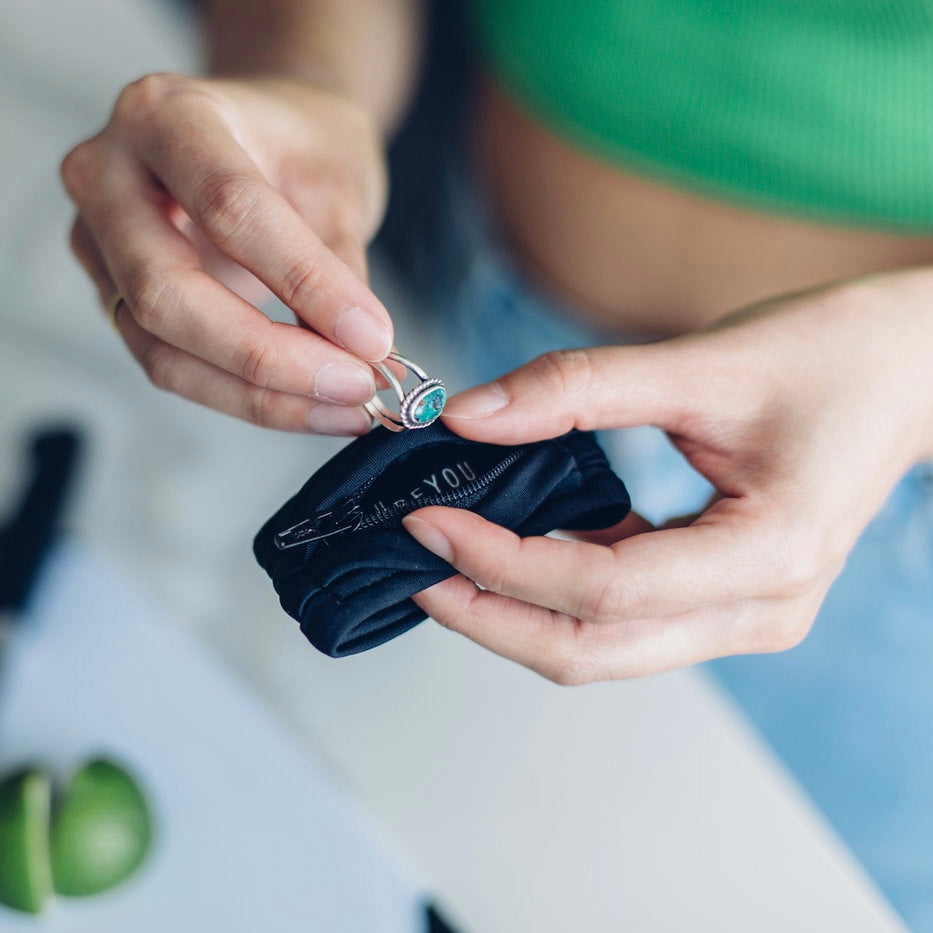 Committed to making your life easier, the Ring Bandit is a functional zipper pocket, hidden within a stylish wrist accessory. The Bandit provides freedom from worry, whether that be about losing your new wedding ring on your honeymoon or figuring out how to bring an essential medication out and about. Simplifying the little things is what we are all about.